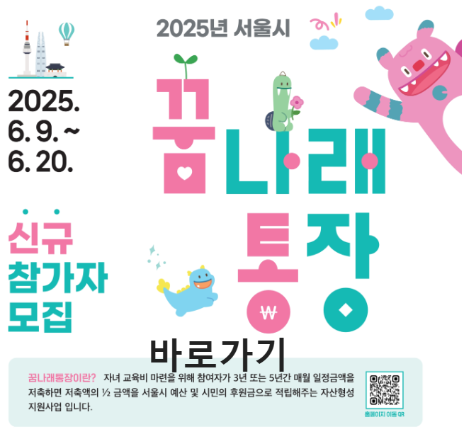 서울시가 운영하는 꿈나래 통장,부모가 매달 일정 금액을 저축하면 서울시가 함께 자녀의 미래를 키워줍니다.
