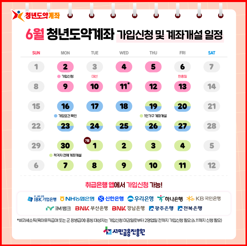 | 가입 절차 | 은행 앱·지점 또는 비대면 가입 / 매월 지정 기간 접수 |