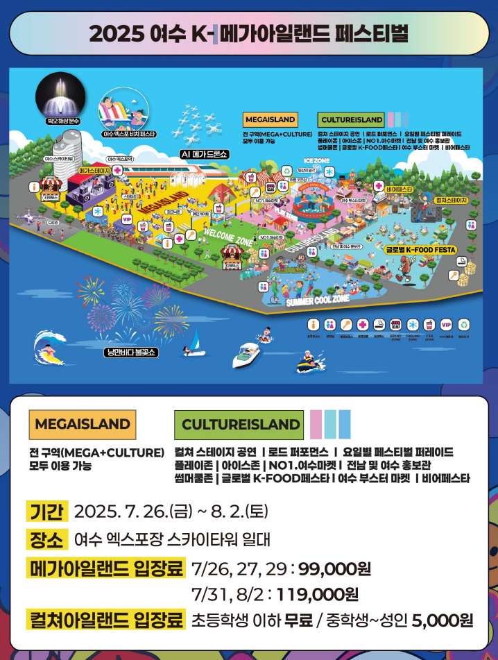- DAY2: 메가 아일랜드 페스티벌 → 오전 여수 수산시장, 신선한 게장 식사